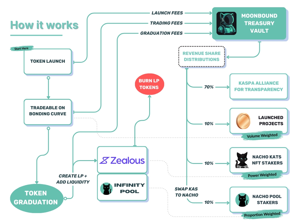 Anyone can launch a new token through the Moonbound UI by paying a KAS Launch Fee.